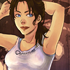 Description: Chell with her hair down looking tired.